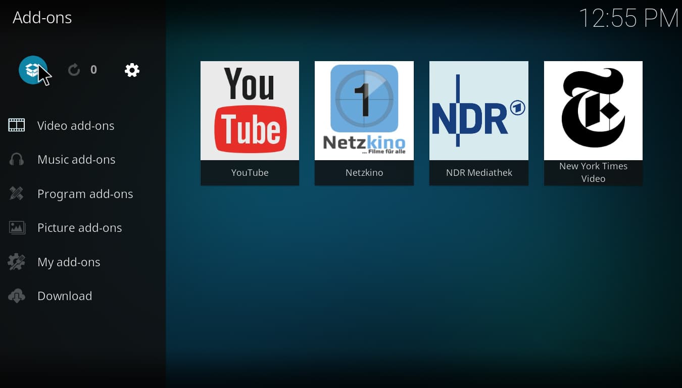 • Go to your home screen and go into Add-ons. There, on top-left, you will see a little box, click on it.