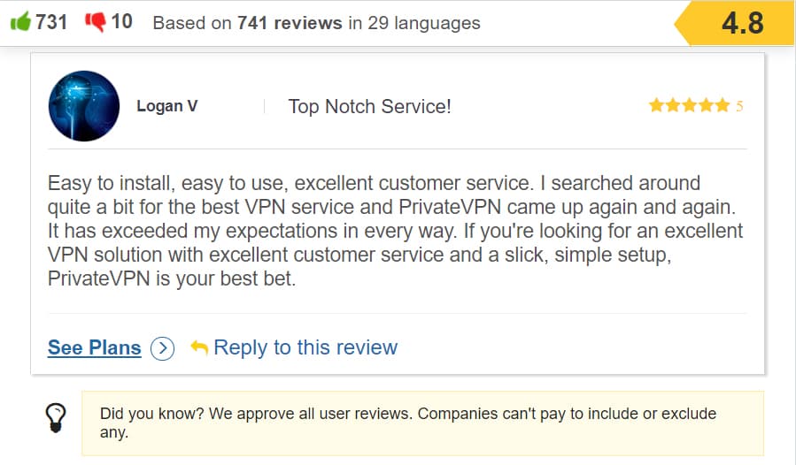 You are reading this on the blog of PrivateVPN hence you might think that we are biased, but we do work with Hulu, and do support the most regions on the market for Netflix. Here’s what Logan has to say about us: