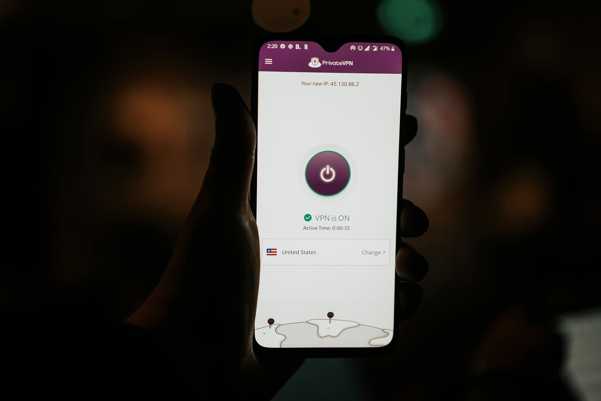 1. Connect to a US server with PrivateVPN.
