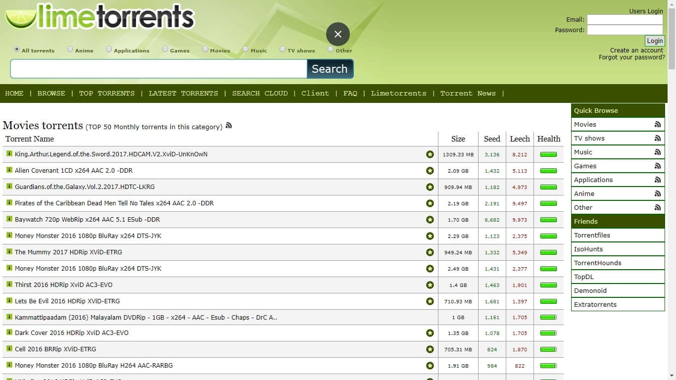 The UI of LimeTorrents consists of this light green color that just is very easy on the eye, and that has an impact on user experience. But then again, you aren’t here to read about colors. You want to know about content and reliability.