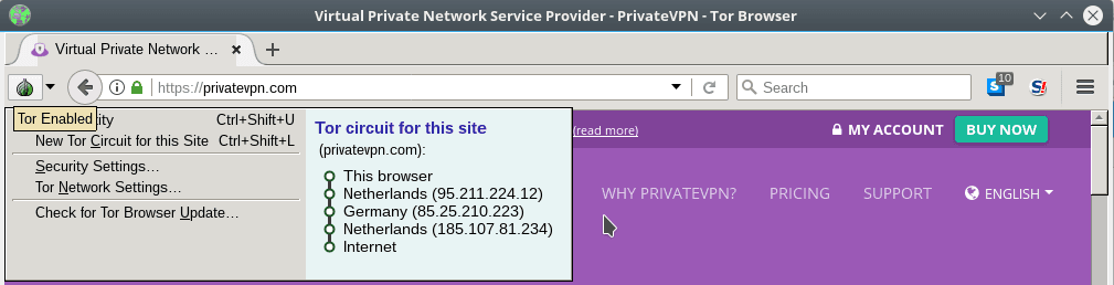 In other words, it basically means connecting to PrivateVPN without exposing your home IP to PrivateVPN as Tor acts as a bridge in between. Tor is a solid anonymity tool. Hence providing you with a dual layer to privacy, security and anonymity.
