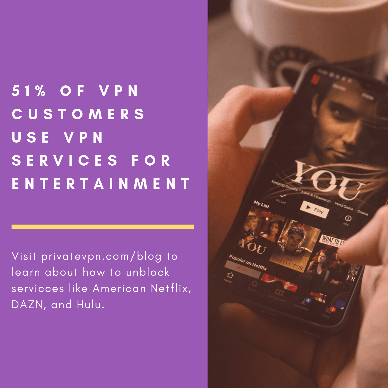 Whether you want to watch American Netflix, Hulu, DAZN, or HBO, PrivateVPN supports all of the most popular platforms on the market.