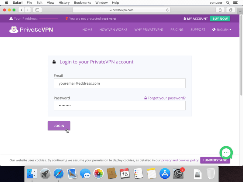 Proceed to Control Panel: https://privatevpn.com/control-panel