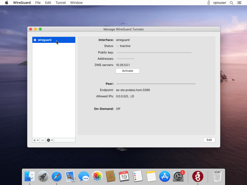 Download and install WireGuard application: https://itunes.apple.com/us/app/wireguard/id1451685025?ls=1&mt=12
