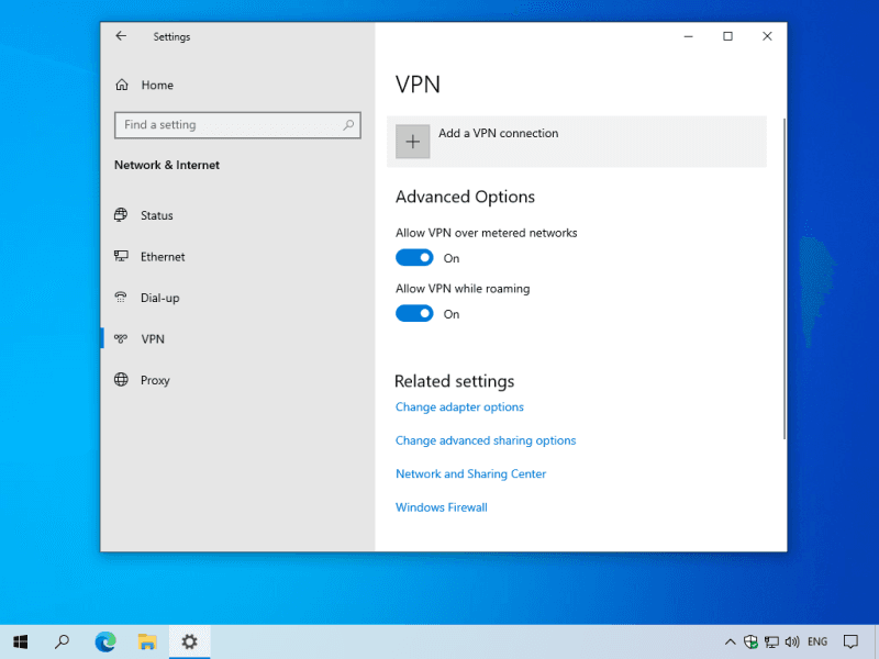 Click VPN on the left tab then select Add a VPN Connection.