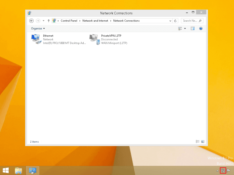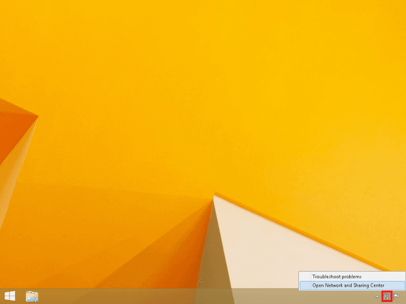 Right-click on the network icon located at the system tray and then select Open Network and Sharing Center.