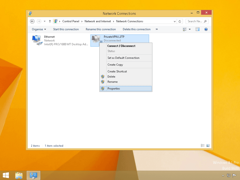 Right-click on the VPN profile that you have created and then select Properties.