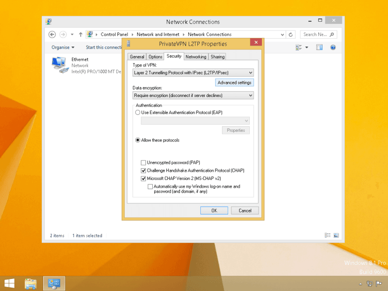 Enable Microsoft CHAP Version 2 (MS-CHAP v2)