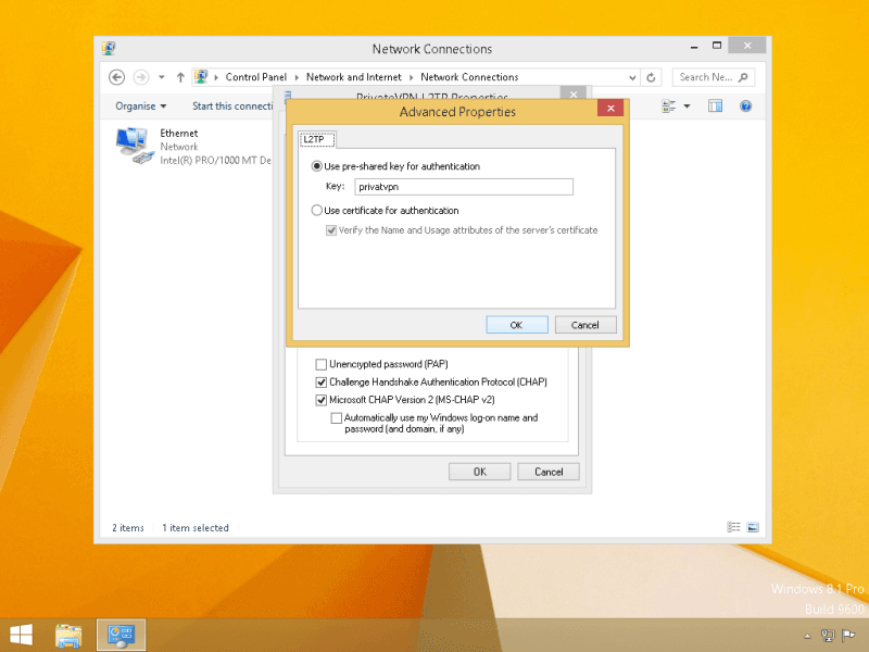 Select Use pre-shared key for authentication and then type: privatvpn