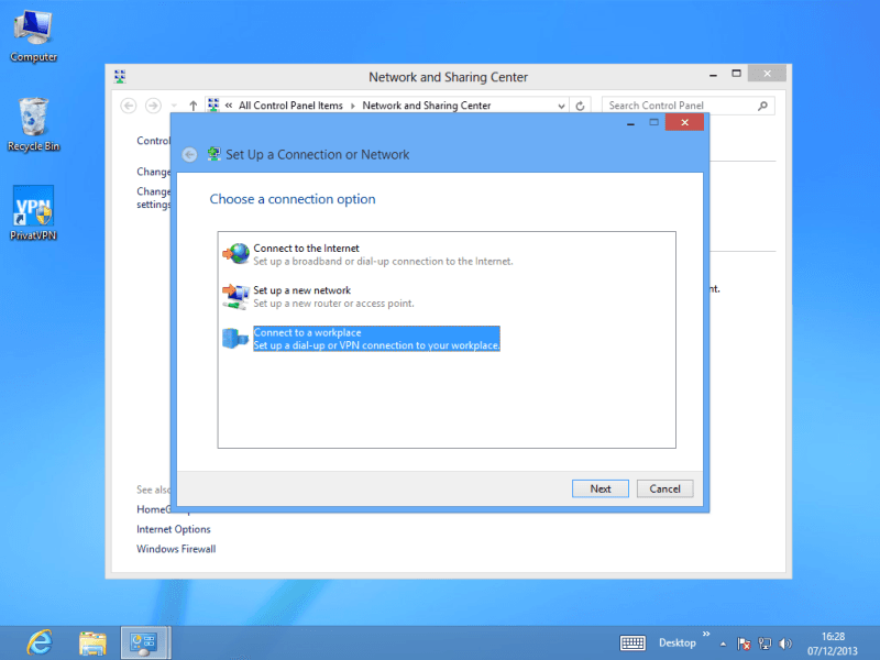 Select Connect to a workplace and then click Next.