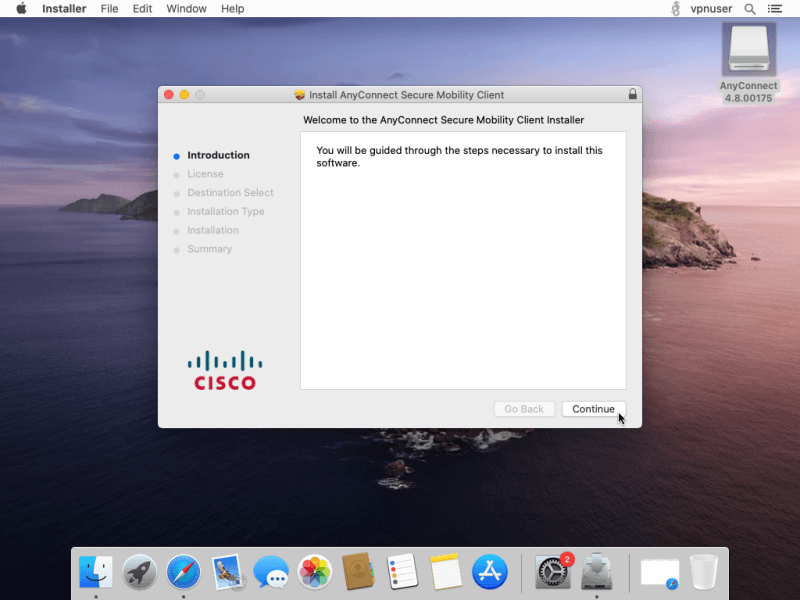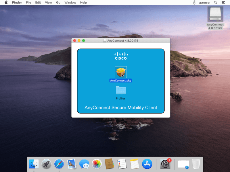 Then double click on AnyConnect.pkg to start the installation process.