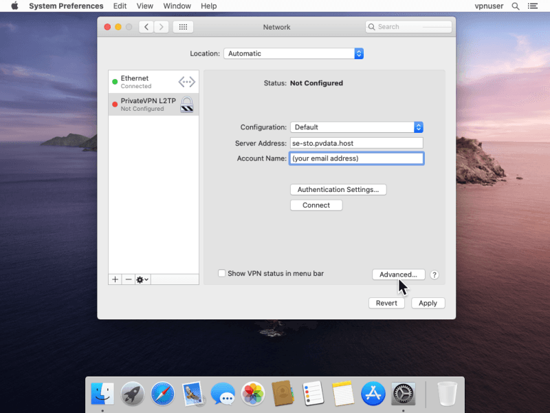 Account Name: (your PrivateVPN registered email)