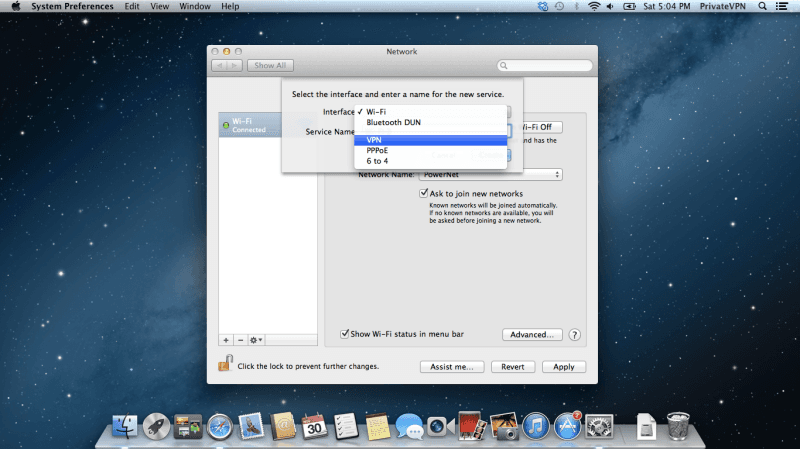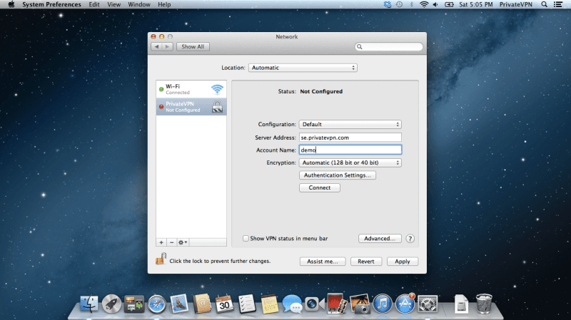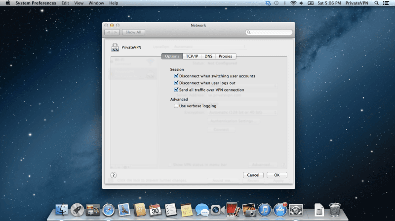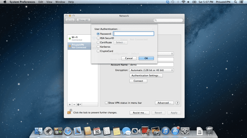 Click on Authentication Settings... and enter your password for PrivateVPN