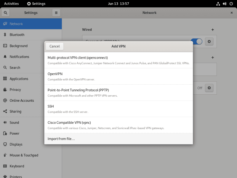 Go to Settings > Network. Click + to add a VPN profile.