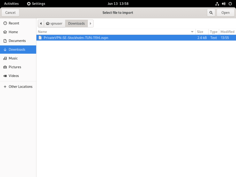 Proceed to the extracted configuration file folder then choose your preferred VPN location. Click Open.