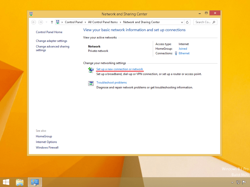 Click on Set up a new connection or network.