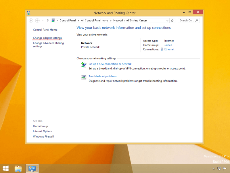 Click on Change adapter settings.