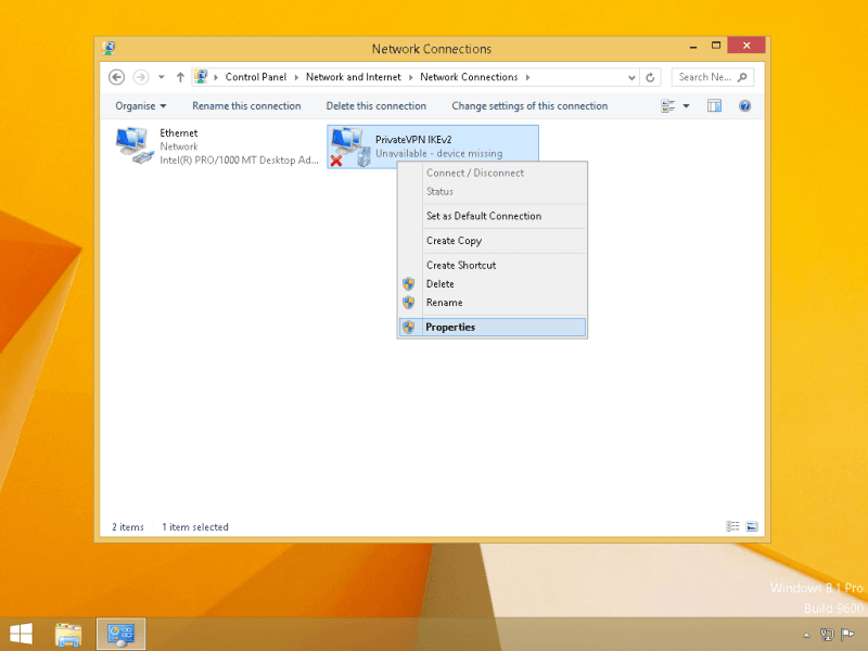 Right-click on the VPN profile that you have created and then select Properties.