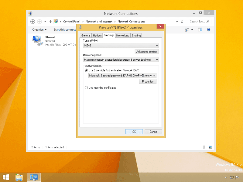 Destination name: PrivateVPN IKEv2 (any name would do)