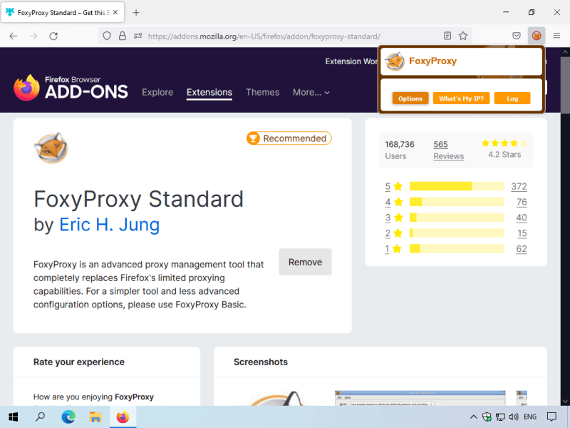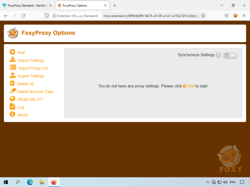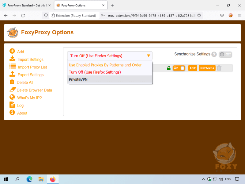Click the FoxyProxy Extension icon and then select Options.