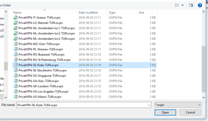 Select your VPN server configuration file from the folder where you extracted the zip file.