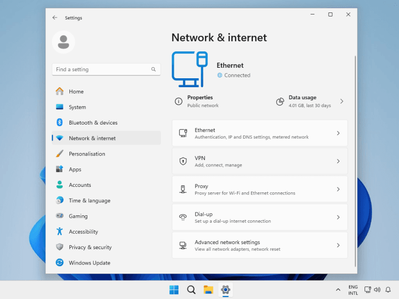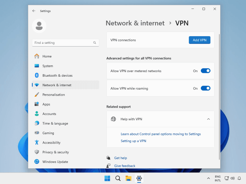 Select Network & Internet at the left menu and then click VPN.