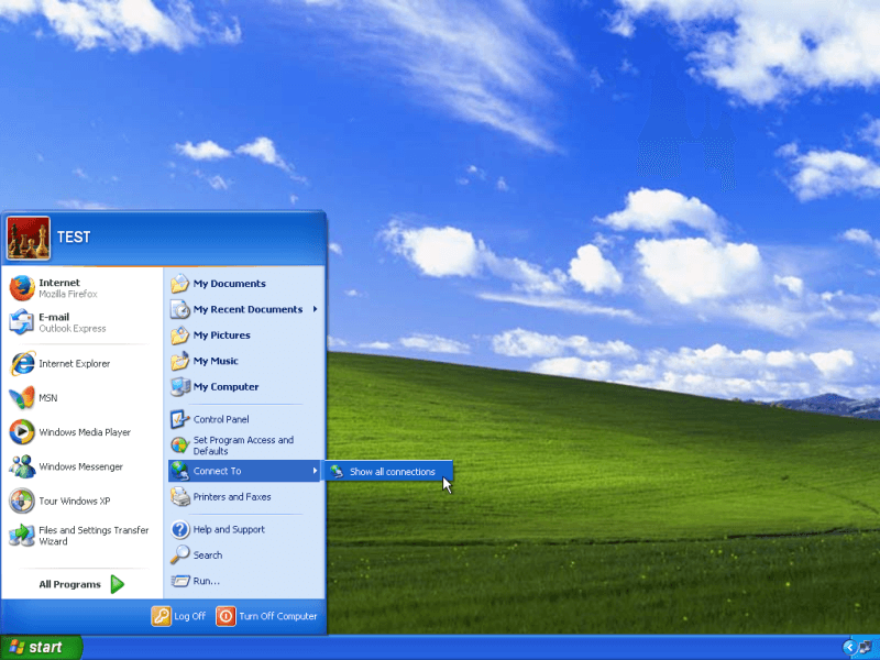 Press the Start button and choose Connect to and then Show all connections.