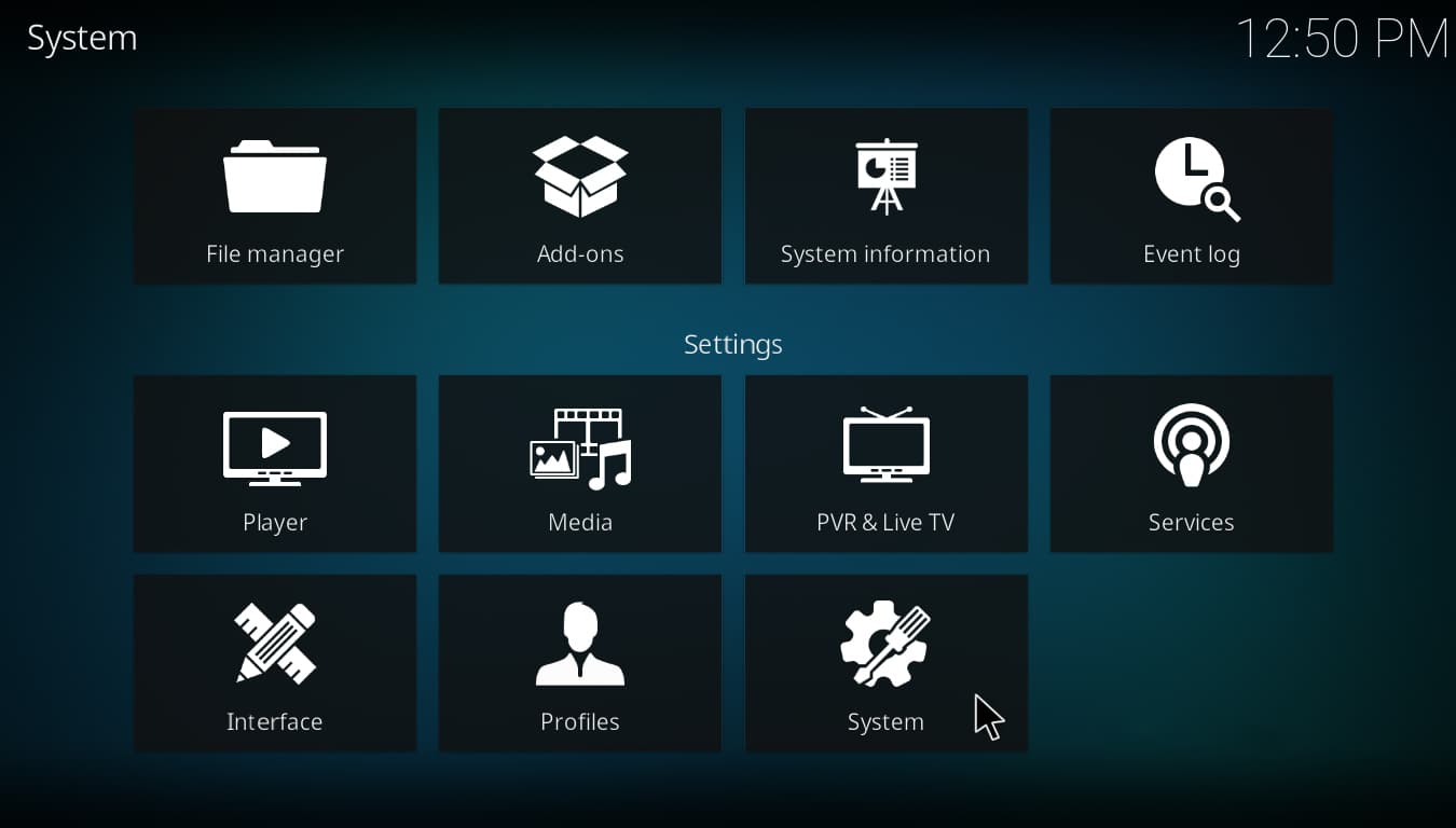 • Open Kodi, go into Settings as you would on Kodi 17.