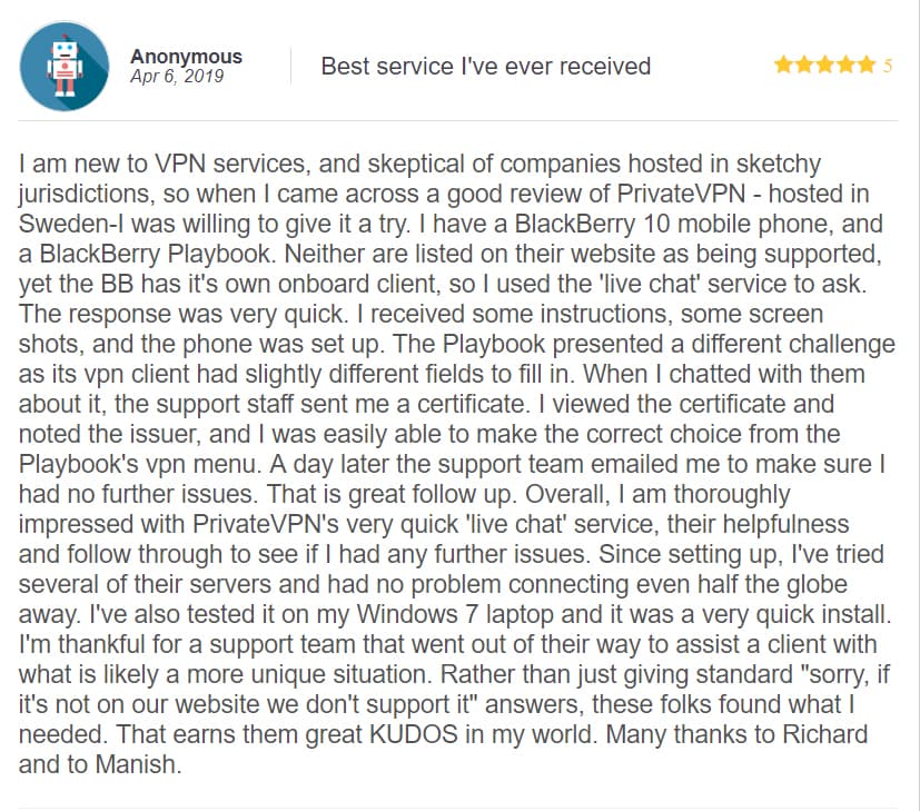 Special offer: 12 Months + 24 Months extra! ALL PrivateVPN subscriptions are protected by a 100% money back guarantee. Sign up in three easy steps and test your VPN without obligation for 30 days!